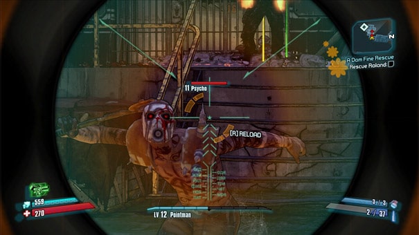Combat in Borderlands 2 may seem really straight forward at first but you’ll soon realise that a certain amount of strategising is necessary if you don’t like dying frequently. Headshots are the fastest way to take an enemy down, so my first suggestion would be to invest in or find a powerful sniper rifle and have one in your inventory at all times. The Assassin is especially proficient in using the sniper, but other classes can become just as good by investing their Badass Points into improving damage, reducing recoil and so on.
