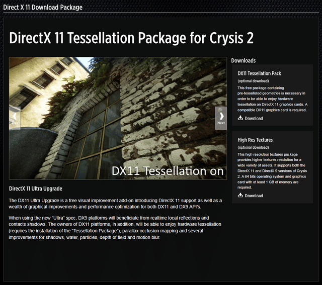 Crytek, the studio behind Crysis 2, is working on a DirectX 11 patch for the PC version of the game, according to their website MyCrysis.com. The post has been removed from the site, but we do have the screenshot, courtesy of a Neogaf user Beedog. The DirectX 11 patch brings tessellation support, improvements to motion blur, shadows, depth of field and many more fancy visual effects.