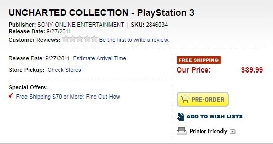 A bundle containing blockbuster PS3 titles Uncharted: Drake’s Fortune and Uncharted 2: Among Thieves will be out next month (July 22) if a listing on US retailer Best Buy is to be believed. Moreover, the bundle will contain some unlocks for Uncharted 3: Drake’s Deception. Sony is also planning to release bundles for Resistance and Ratchet & Clank, both of which are also scheduled for release on July 22.